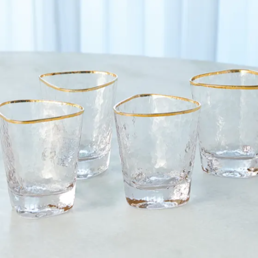 Featuring a glittering gold rim and textured glass that refracts light, this collection adds an exuberant sparkle to any tablescape. A glass for every style of tequila, the gold rim shot glasses will bring a touch of luxury to your bar.